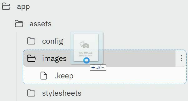 - 「 app/asstes/images 」というフォルダに入れるだけです。※マウスでつかんで、放り込むだけです。
