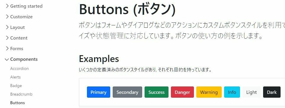- ボタンの色や、大きさなども、class に指定するだけで簡単に変更できますよっていうことが書いています。