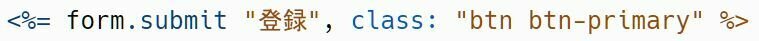- 「登録」ボタンは「 submit 」ですが、 button_to と同じように class を設定するだけです。