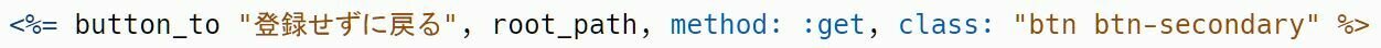 - 「登録せずに戻る」のボタンもやっておきましょう。こちらは「 secondary 」にしています。