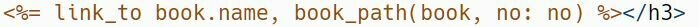 - これはなぜかというと、「 link_to 」の場合は「 book_show_path(book, no: no) 」の部分で、第2引数に指定している変数no の値を、パラメータ(prams)にしてコントローラに渡すことが出来ました。