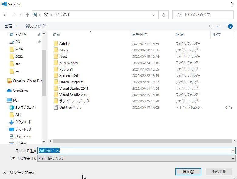 何かウィンドウが開いてきたと思いますが、このウィンドウは「ファイルの保存場所」や「ファイルの名前」を決めます。次のページを見てください。