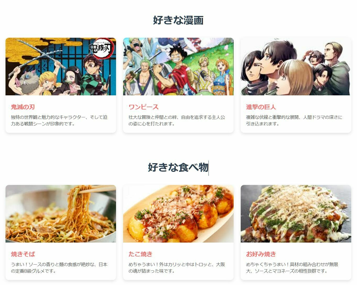 <h2>好きな食べ物</h2>