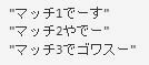 matchs = ["マッチ1でーす","マッチ2やでー","マッチ3でゴワスー"]