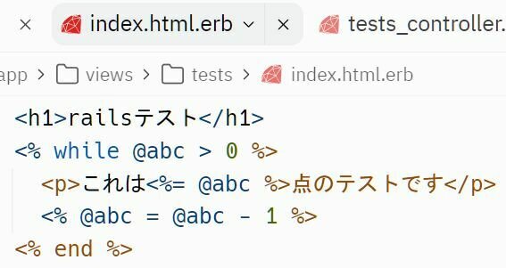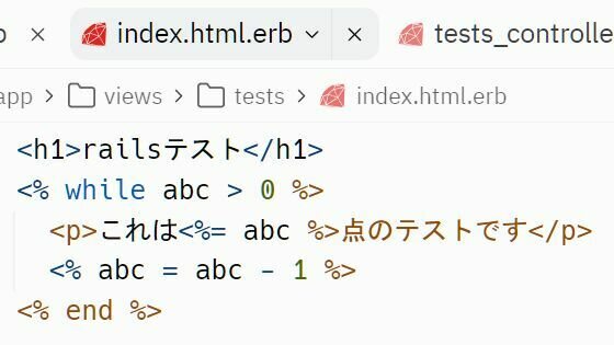 - つまり「tests」フォルダの index.html.erb が読み込まれるということです。