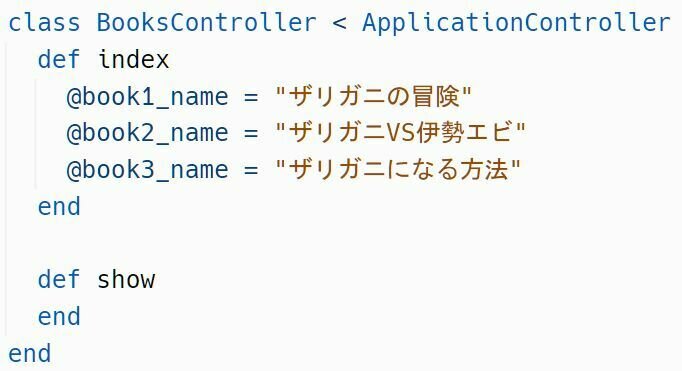 - (appフォルダの中の、controllersフォルダの中の、books_controller.rbを開く、って意味ですね)