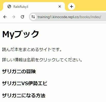 - ページも確認しておきましょう。(URLの末尾が/books/showのページですね)