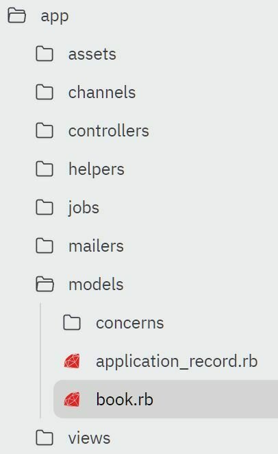 - app/models/book.rb というファイルが増えていますので、確認しておきましょう。
