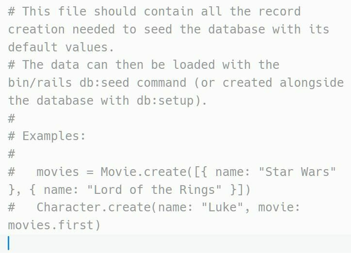 - ファイルを変更できたら、改めてseedファイルの内容をデータベースに反映させたいのですが、このまま【 rake db:seed 】とコマンドを叩くと、今の初期データに”追加”でデータが入ってしまいます。